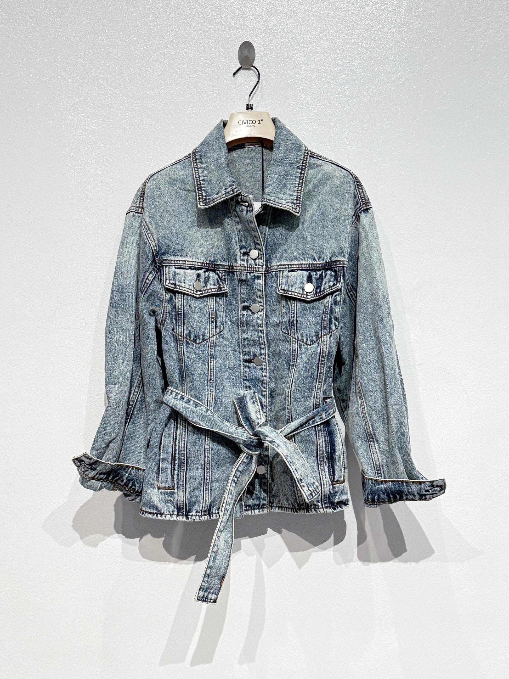 Embrace the utility trend wearing our denim belted shacket. Distressed denim, pockets galore and a self tie belt to define your waist.