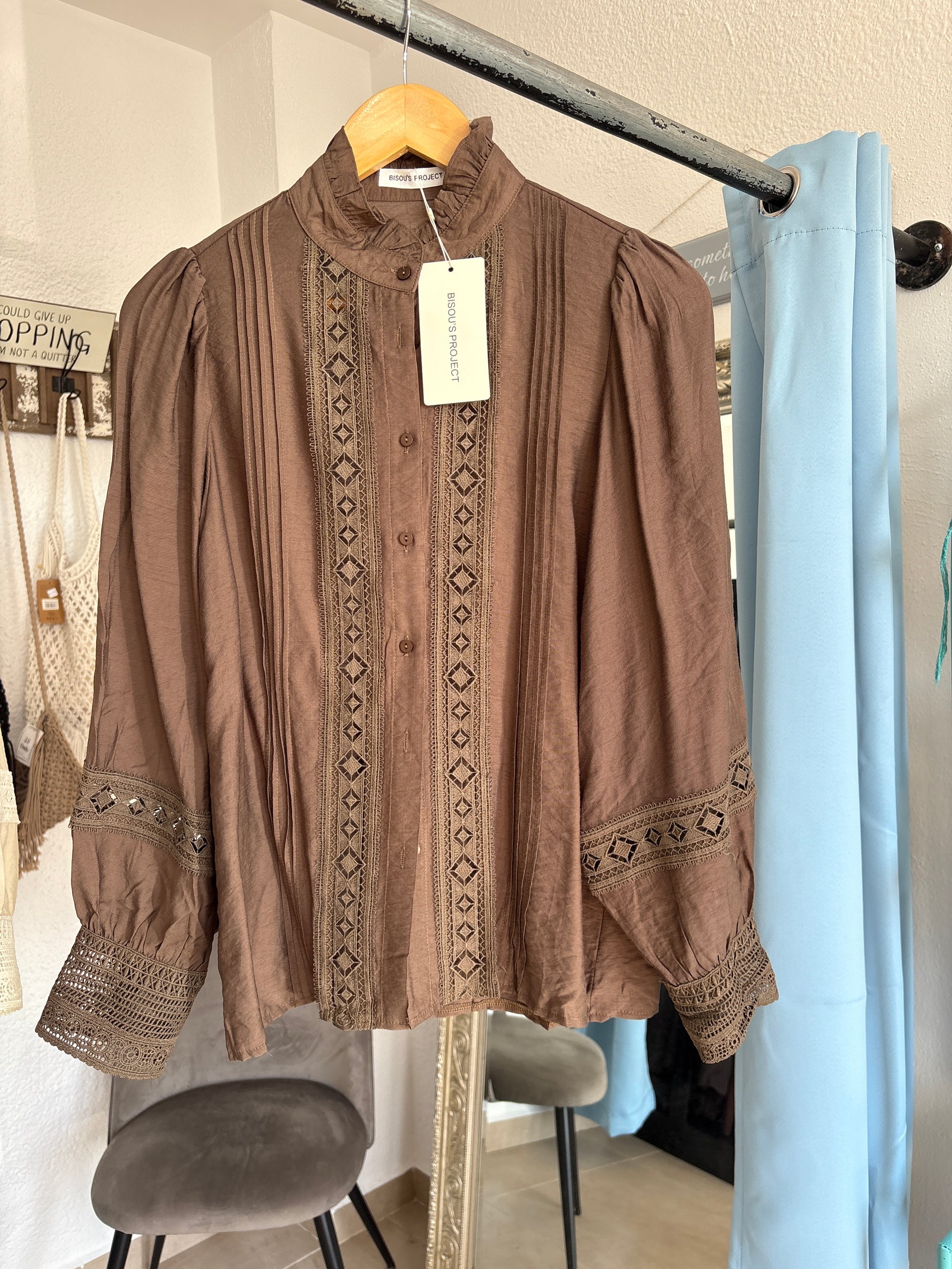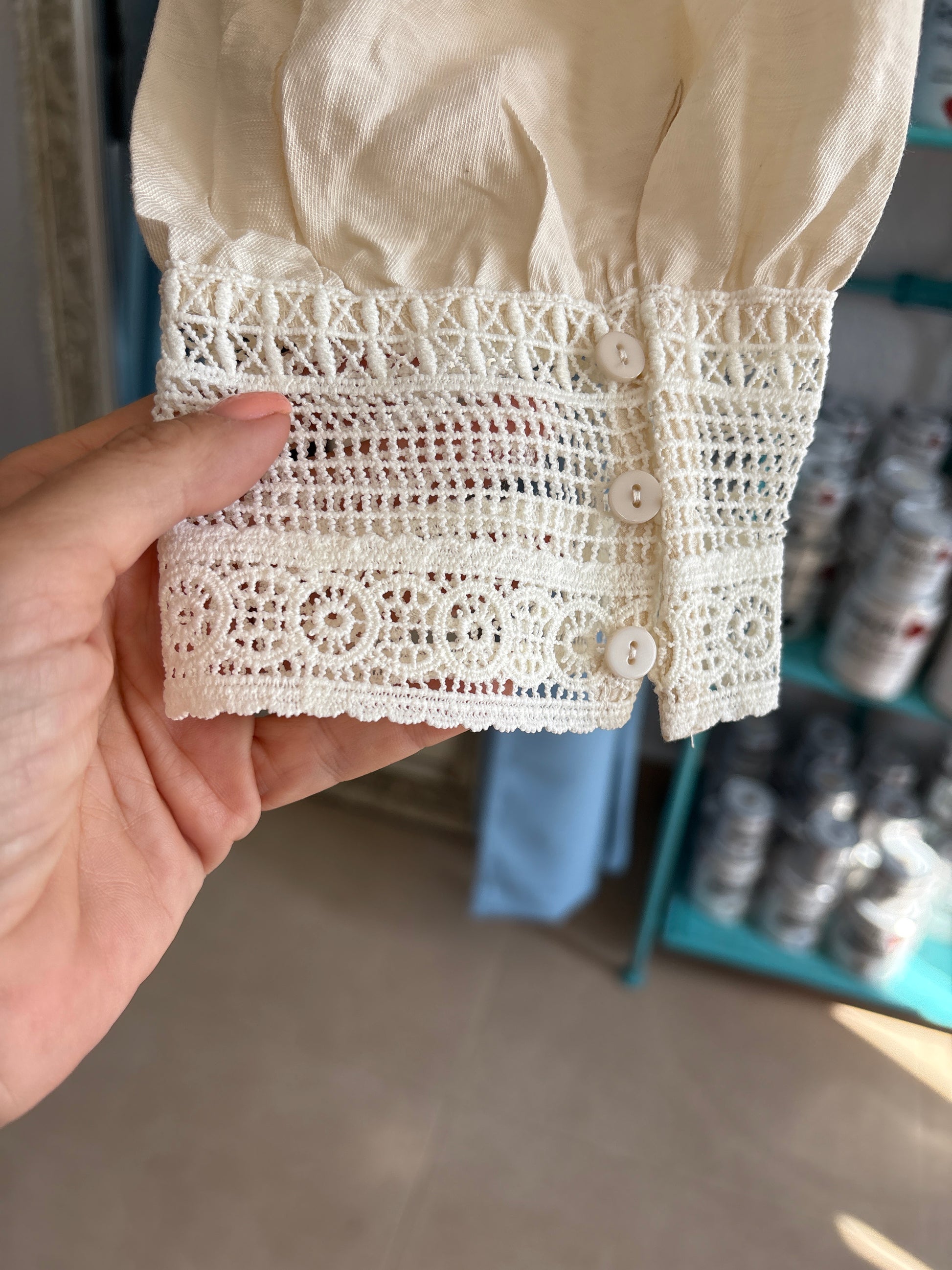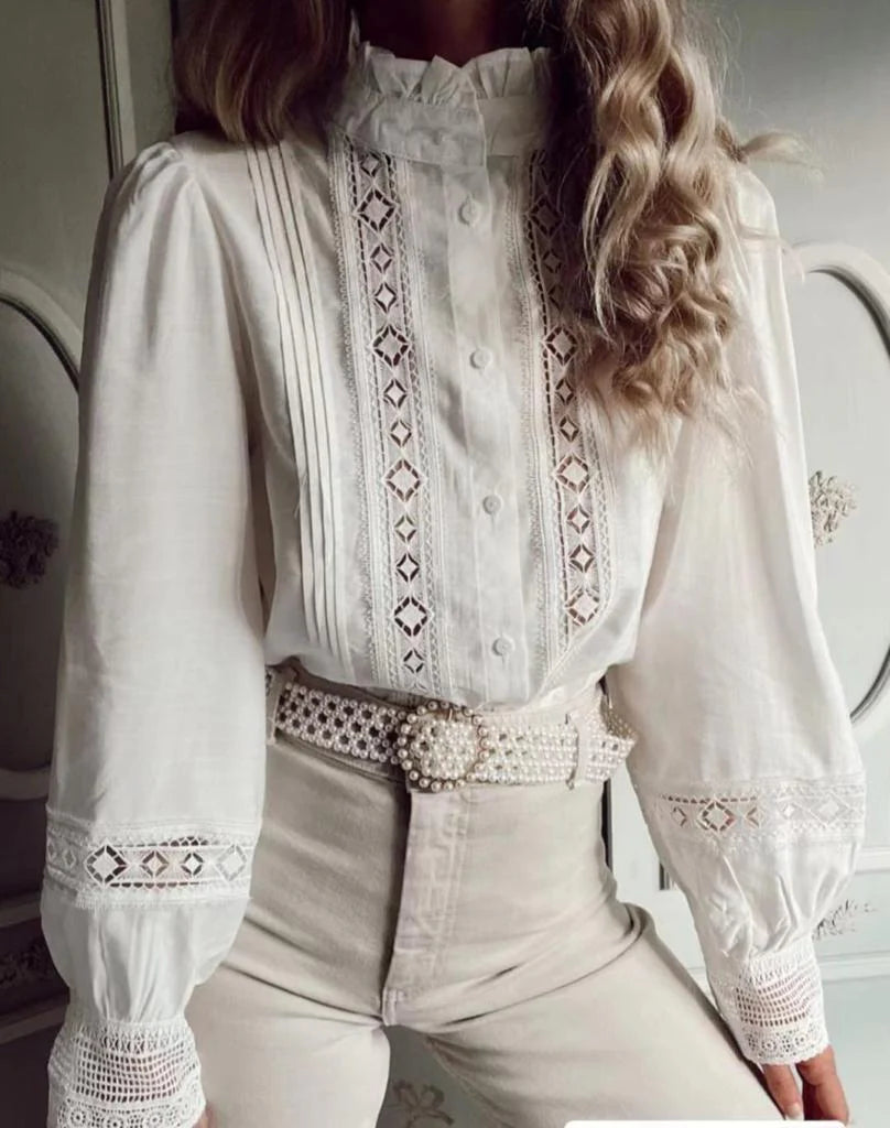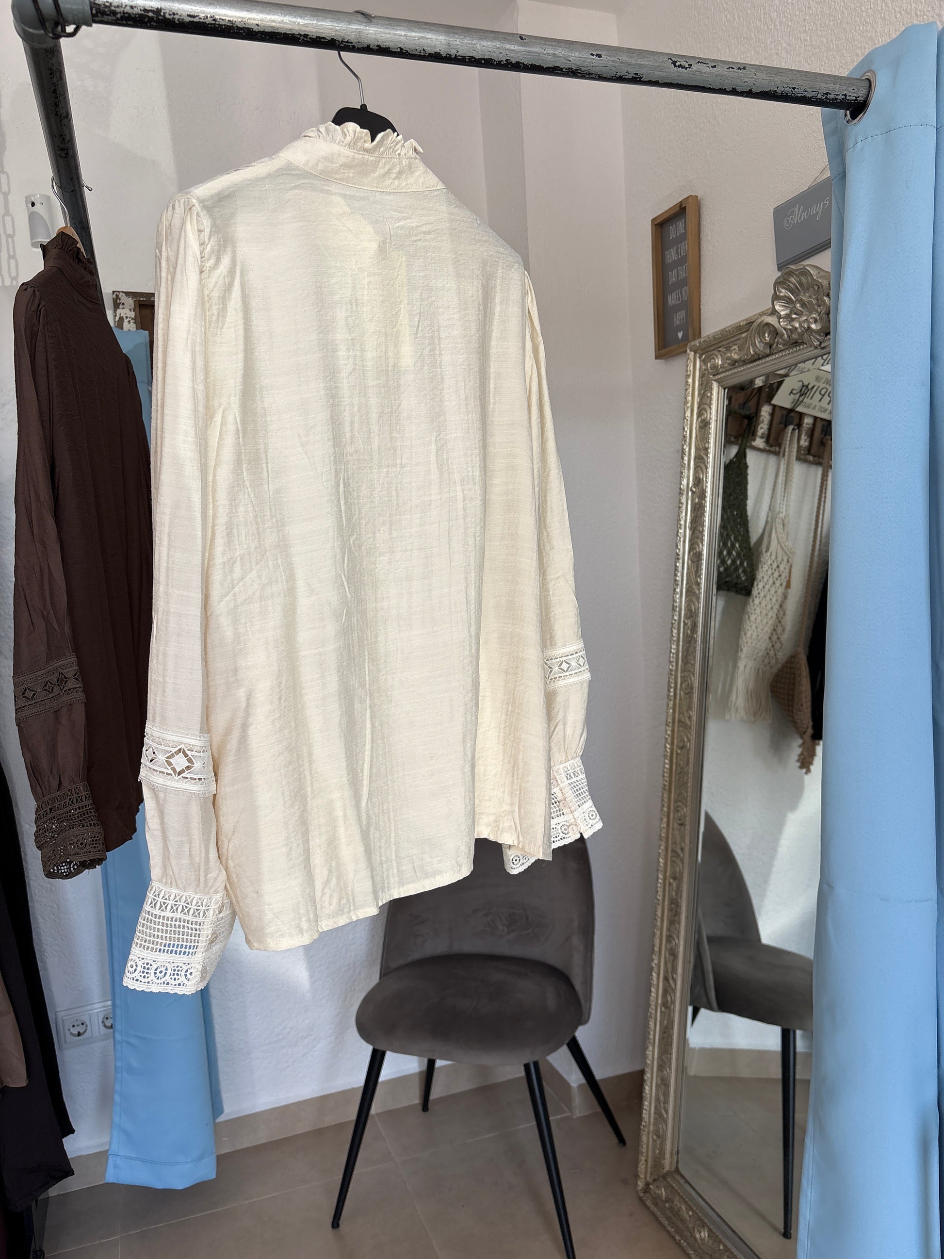 The beauty is in their details in this stunning shirt, grandad collar button through with lace details simply glorious.