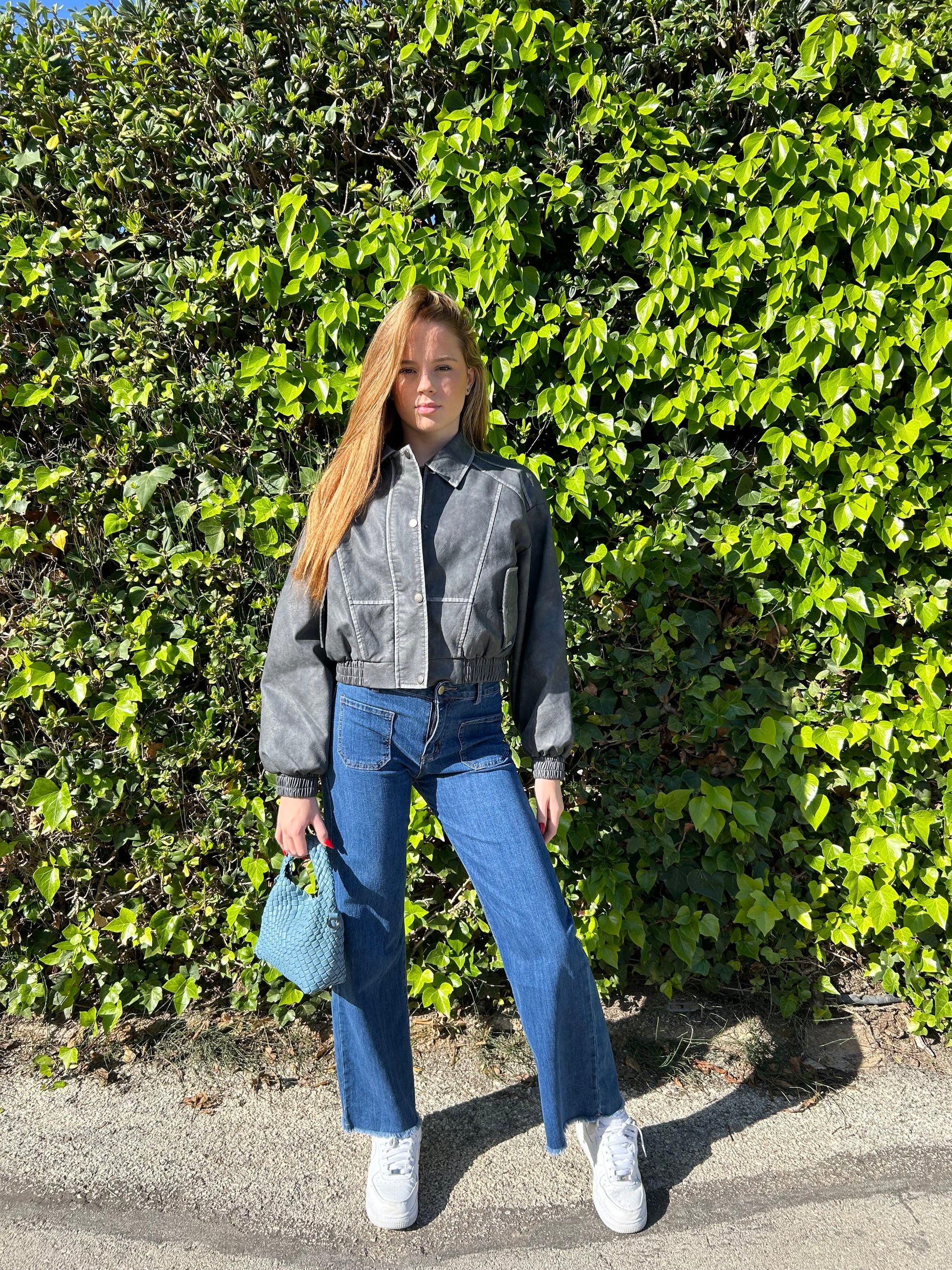 The bold edge of a biker jacket with sleek, modern style. Featuring an elasticated waist for a flattering fit and a collar detail, this piece is perfect for adding an elevated touch to any outfit. Its versatile design makes it easy to dress up or down.