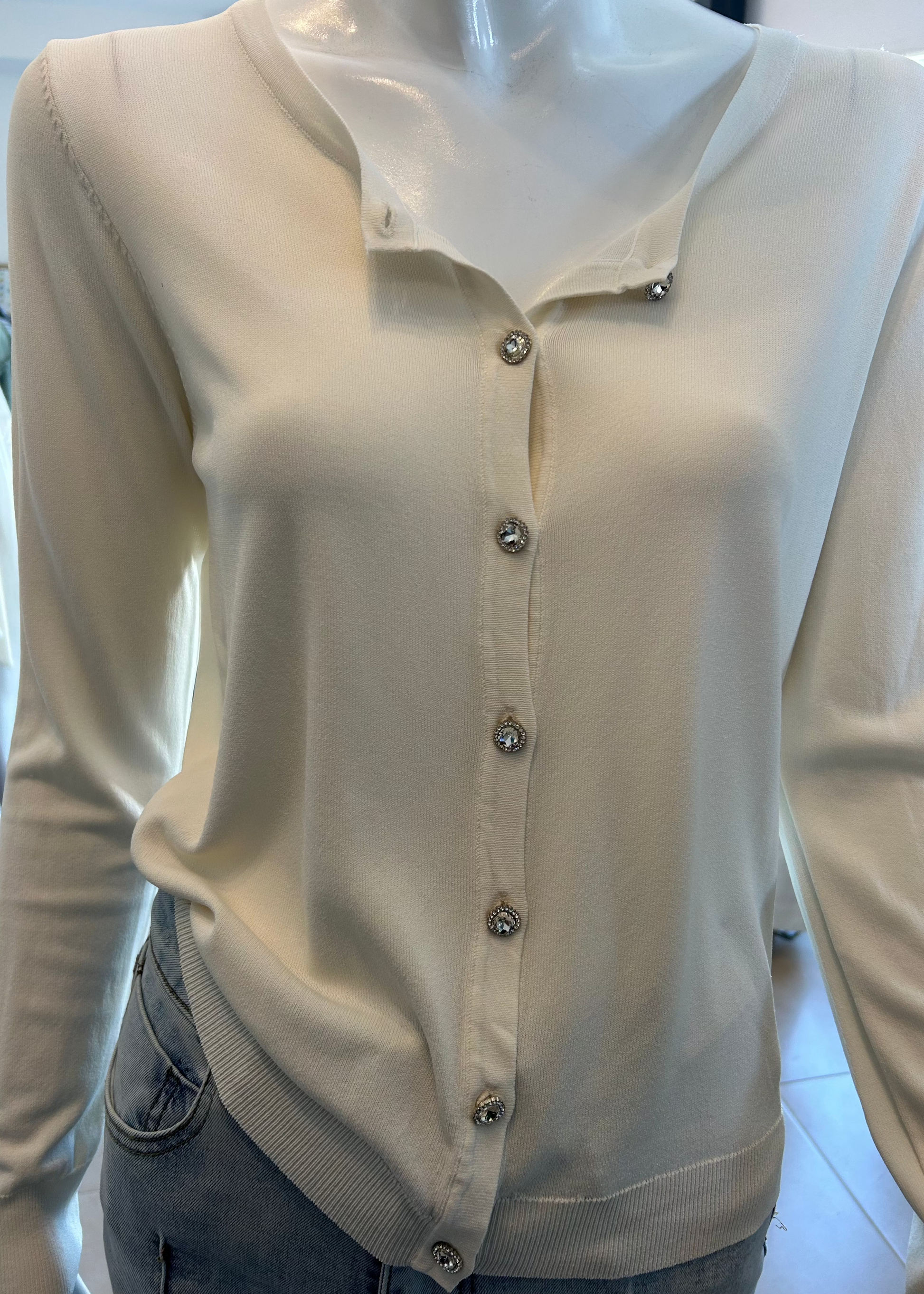 The perfect spring layer, this lightweight cardigan adds a touch of sparkle with its diamante buttons. Soft, breathable, and available in three versatile colors, it’s designed for easy styling—whether draped over your shoulders or buttoned up for a polished look. A timeless wardrobe staple with just the right amount of shine.