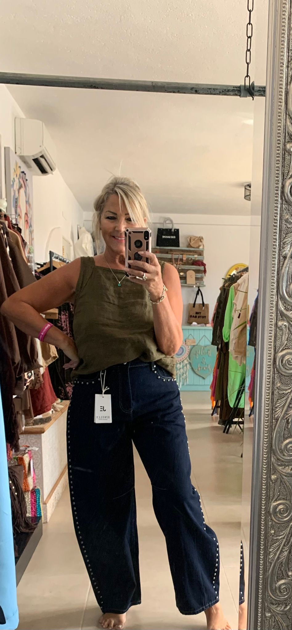 The Jean of the season with balloon legs and stuffed details at the pocket and down the side of the leg