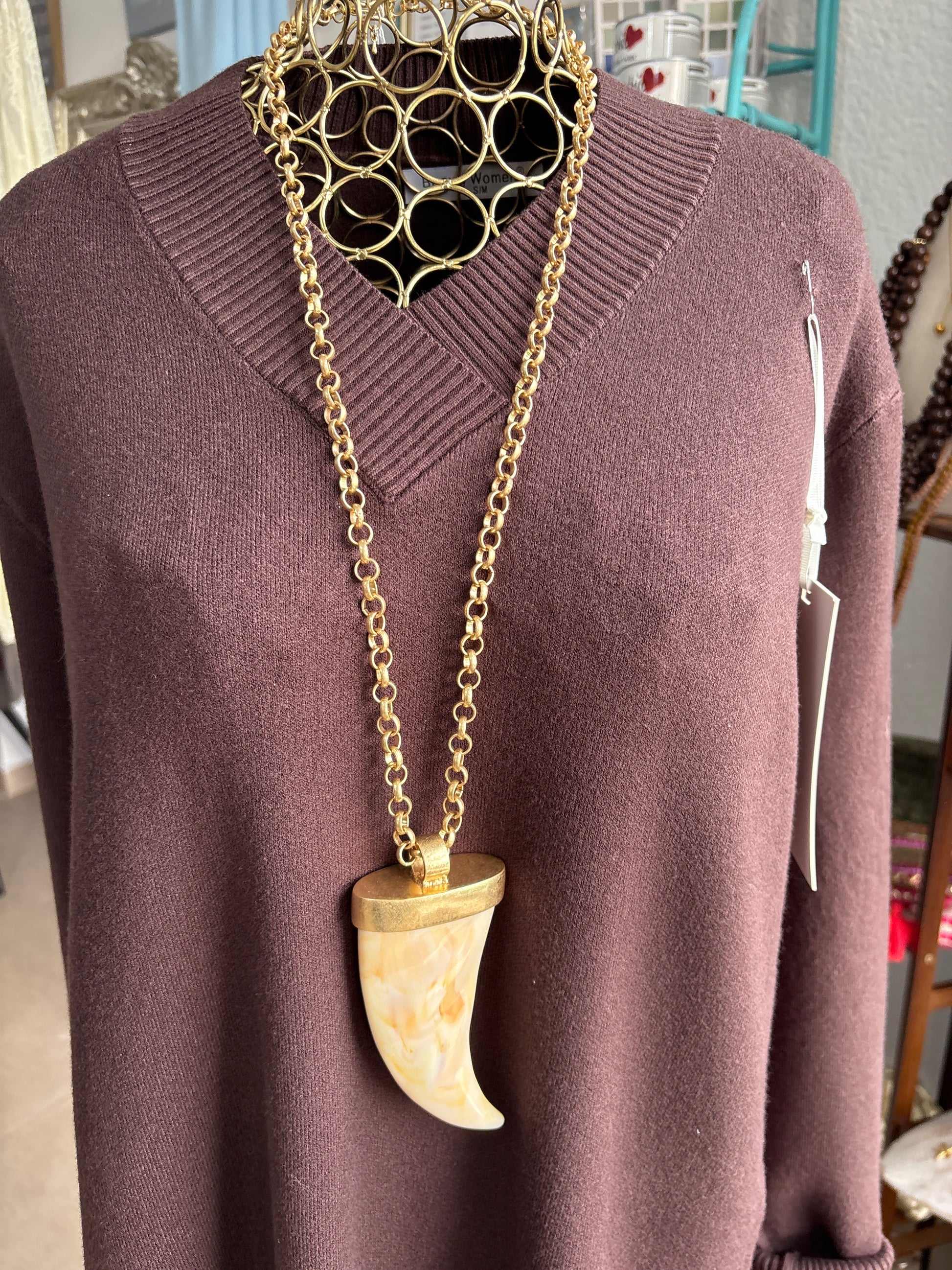 Make a statement wearing this tusk pendant necklace, perfect to transform the plainest of tops from dull to wow