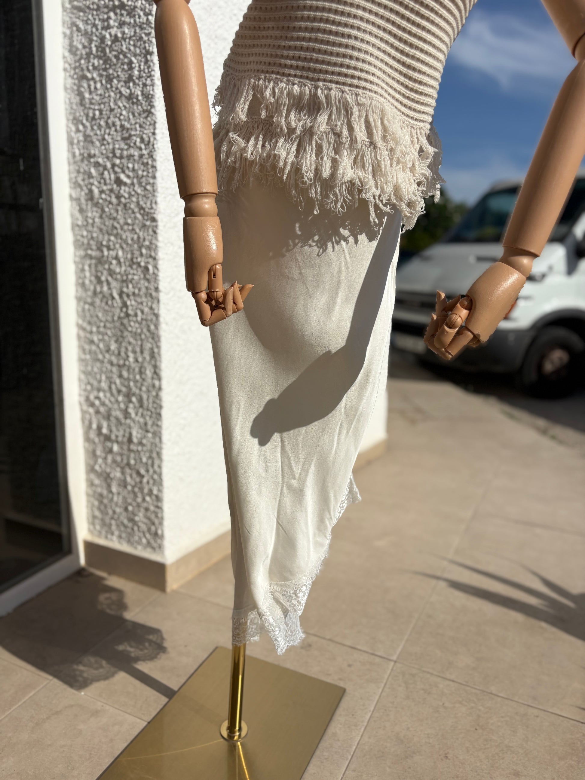 Assymetrical lace trim skirt